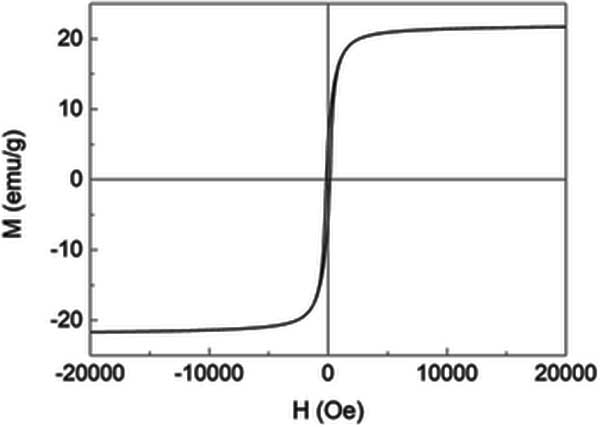 活性炭復(fù)合纖維材料在室溫下-20000至20000 Oe范圍內(nèi)的磁滯回線在圖3顯示,其形狀是典型的S曲線,對(duì)應(yīng)于超順磁行為。包括飽和磁化強(qiáng)度Ms,磁矯頑力HC和剩余磁化強(qiáng)度Mr的磁特性;钚蕴繌(fù)合材料的Ms低于塊狀Fe3 O4,這可以通過(guò)活性炭載入Fe3O4納米粒子來(lái)解釋,這與發(fā)現(xiàn)的結(jié)果非常一致。