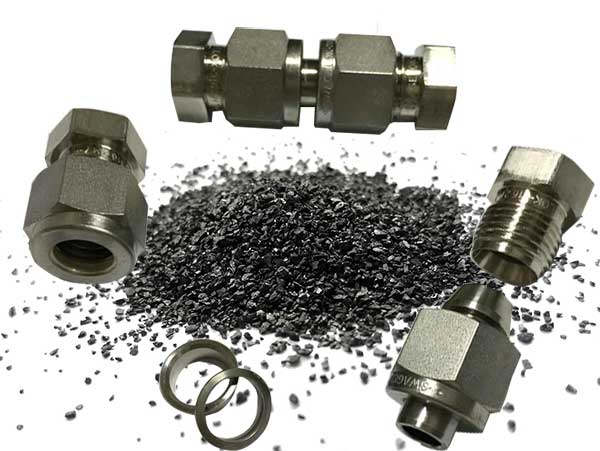 活性炭對脂肪酸的脫羧反應(yīng)在微批量反應(yīng)器中進行,該反應(yīng)器由一個管和兩蓋組裝而成。微批反應(yīng)器及其部件的照片如圖1所示。將一定量的反應(yīng)物和活性炭催化劑加入反應(yīng)器中。此后,將密封的反應(yīng)器置于流化砂浴中,將其加熱至所需的反應(yīng)溫度。在所需的反應(yīng)時間過去后,將反應(yīng)器放入水中以淬滅反應(yīng)。沖洗反應(yīng)器中的反應(yīng)混合物并用丙酮在10mL容量瓶中稀釋。然后過濾稀釋的溶液用于分析。