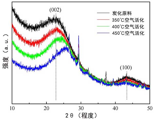 圖3:空氣氧化的活性炭X射線(xiàn)衍射(XRD)圖案。