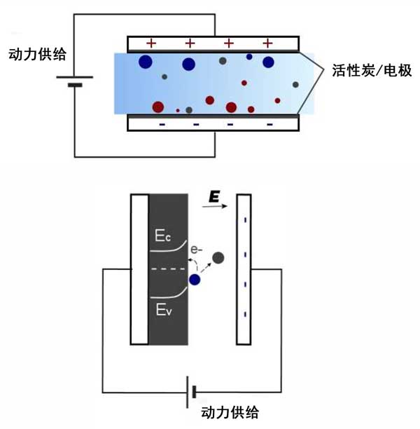 電吸附效應包括向半導體氣體傳感器的敏感層施加外部電場,以改變其感應行為。當負電分子接近薄金屬導體的表面時,自由電子從固體表面被吸引。重要的是,如果處理具有較少可用位移電荷的半導體(例如活性炭),則靜電吸引所涉及的層的厚度將較大,而電導率將較低。半導體電性能的這種變化是金屬氧化物(MOS)氣體傳感器的基本操作。如果將所述系統(tǒng)放置在電場之間,例如通過在兩個電極之間施加電壓來感應,該電場可能會迫使電子朝向(或遠離)(半)導體表面,從而降低(或增加)吸附某些氣態(tài)物種(圖1)。