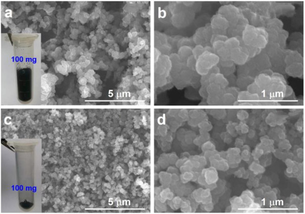 圖2中的插圖是兩種活性炭的數(shù)碼照片。當(dāng)將相同量的兩種活性炭(100 mg)放入相同體積的離心管(5 mL)中時(shí),活性炭-1粉末占據(jù)的體積更大,這表明他的密度較低。通過掃描電子顯微鏡研究了他們的形態(tài)。如圖2所示可以看出,與原始材料相比,兩種活性炭的外觀變化不大。但是,它們的粒徑不同。顯然,活性炭-1的顆粒大于活性炭-2的顆粒。這些顆粒聚集在一起并形成多孔形態(tài)。活性炭-1具有更大的孔徑,表明較疏松的多孔結(jié)構(gòu)。